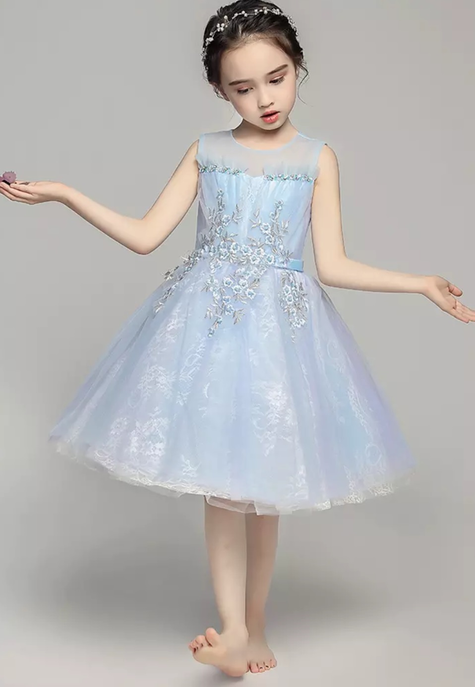 #女の子#華やか#フォーマル#結婚式#パーティー#刺繍#ふんわりスカート#ノースリーブ#膝丈